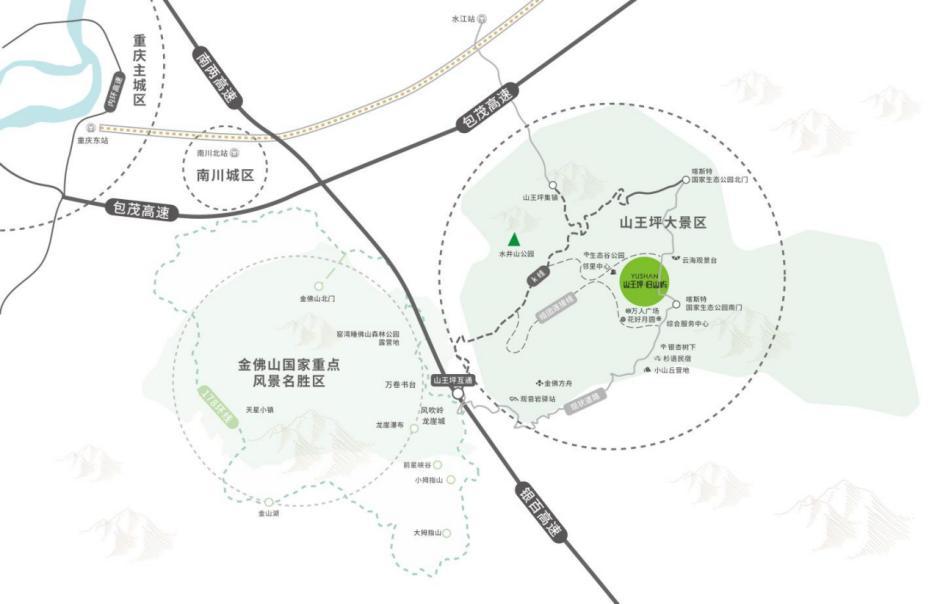 据介绍,从包茂高速和南两高速渝湘复线经银百高速,在山王坪服务区下道,经过大概13公里盘山公路、25分钟左右的车程即可到达项目。目前政府正在修建的新路线k线预计明年年底开通,届时从山王坪服务区下道只需5公里、大约10分钟即可到达。